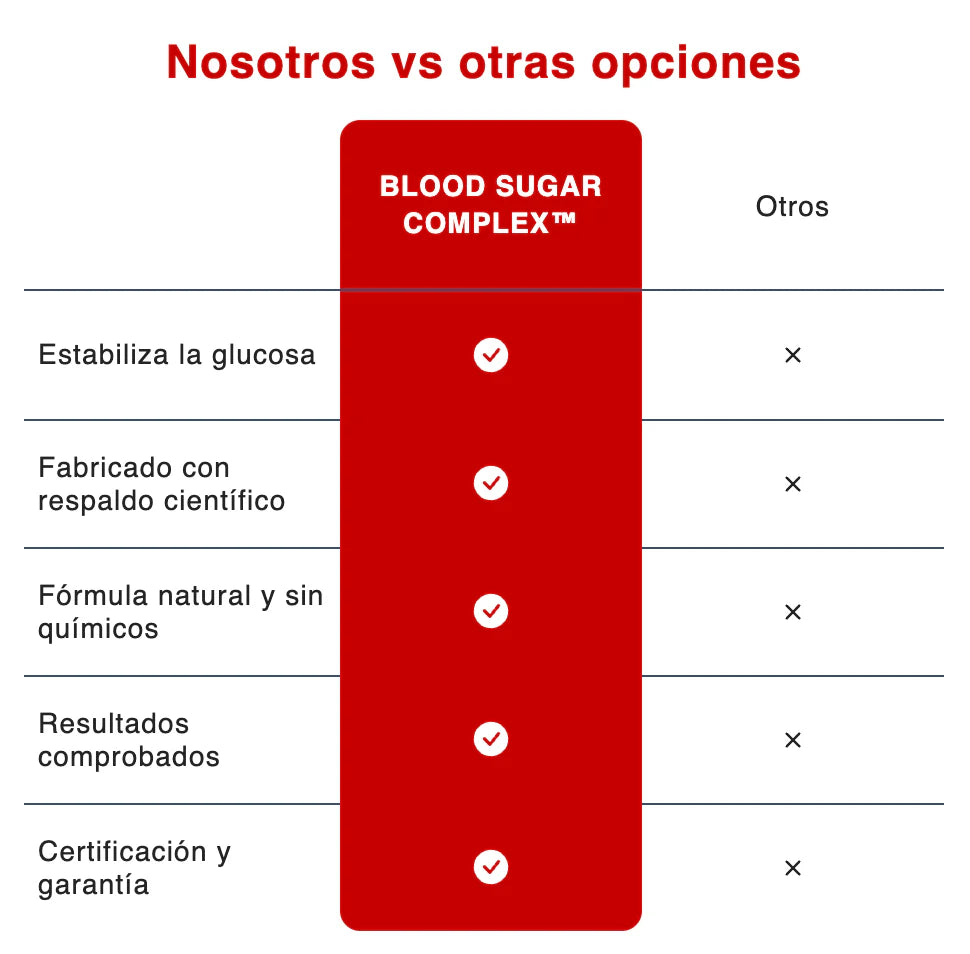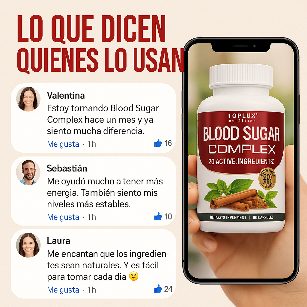 Estoy tomando Blood Sugar Complex hace un mes y me ha funcionado súper bien. Tengo más energía y mis niveles de azúcar se sienten más estables. Es natural y no me causa malestar. Lo recomiendo.