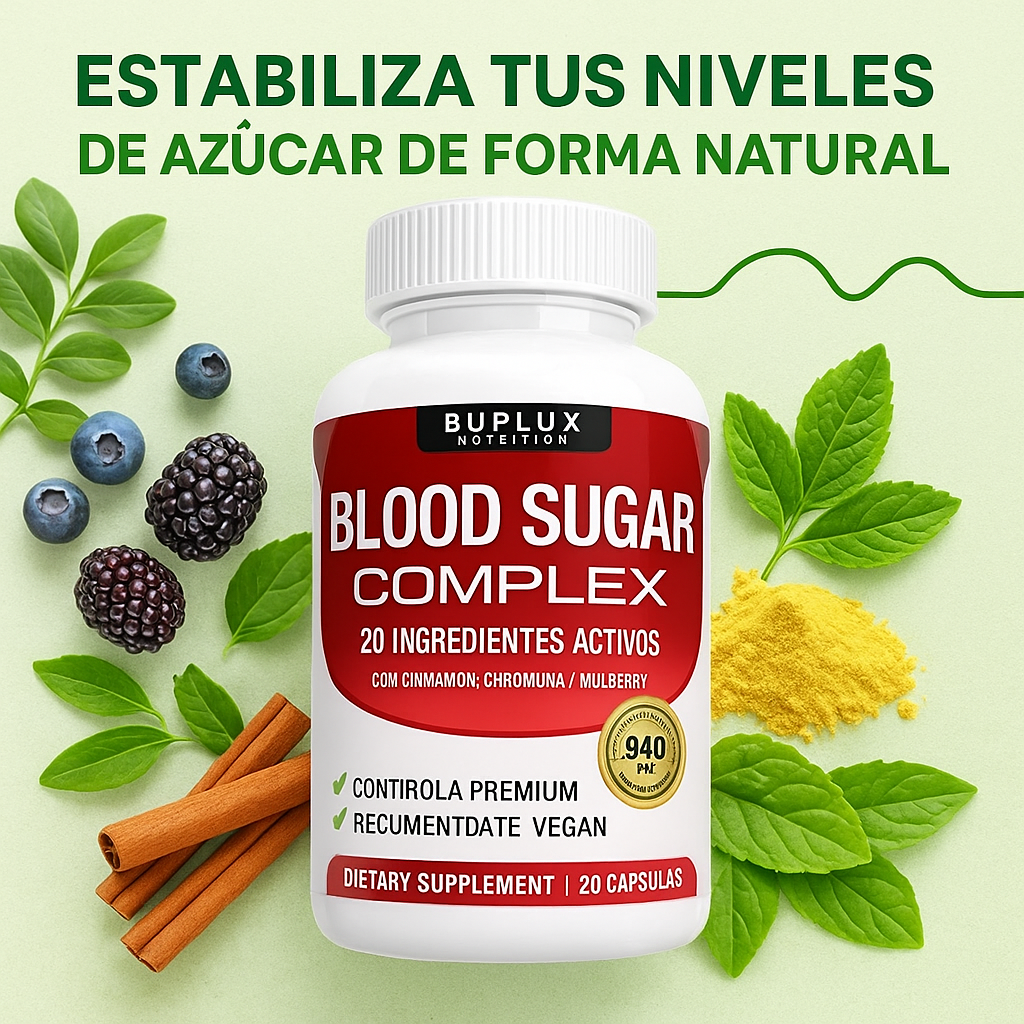 Blood Sugar Complex combina extractos naturales, minerales y vitaminas que ayudan al cuerpo a mantener niveles equilibrados de azúcar y una energía más estable, sin químicos agresivos ni procesos complicados.